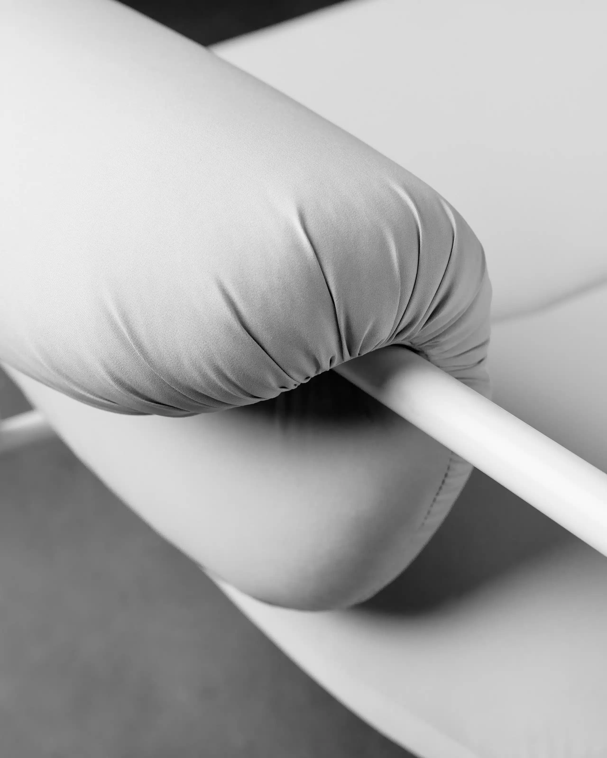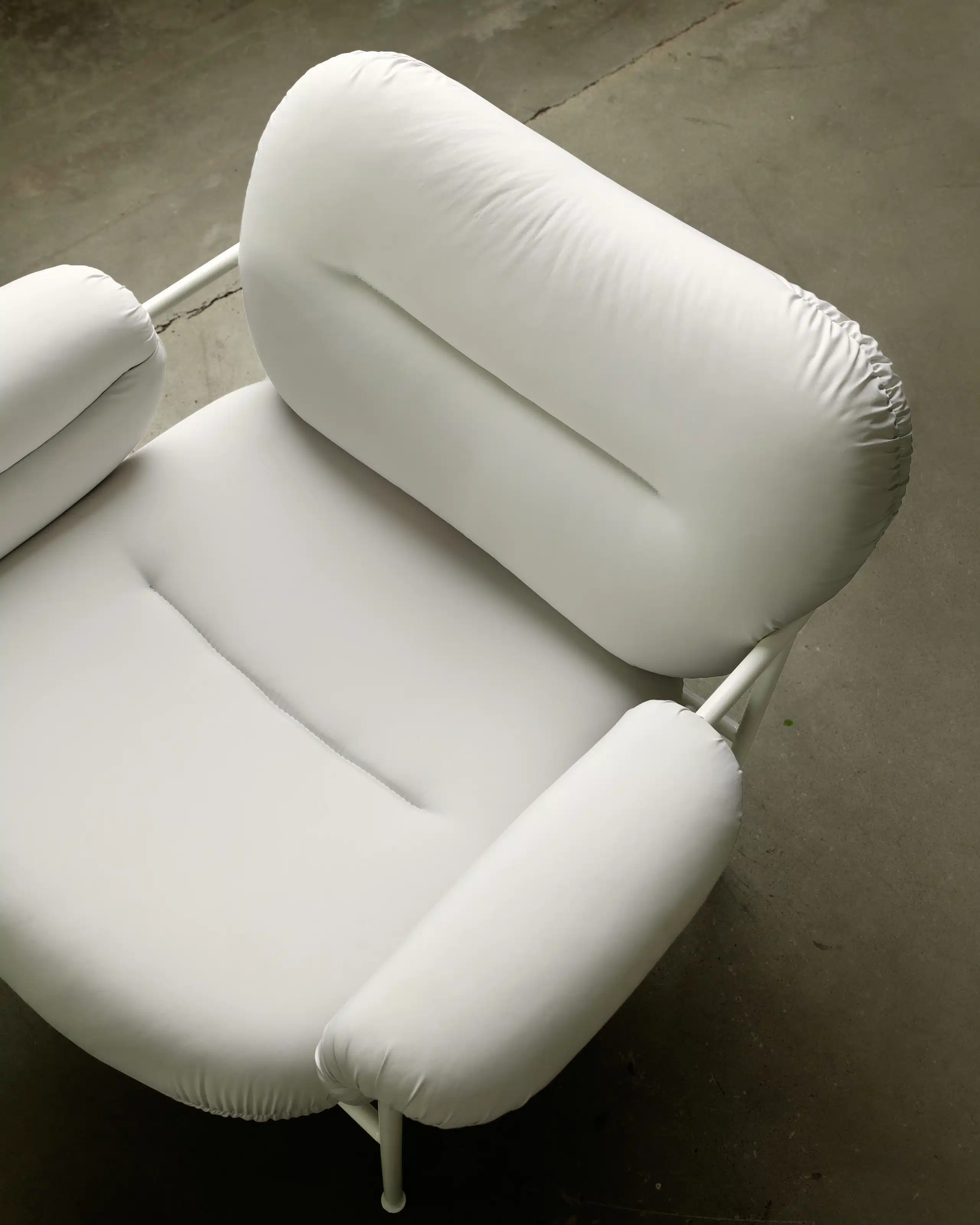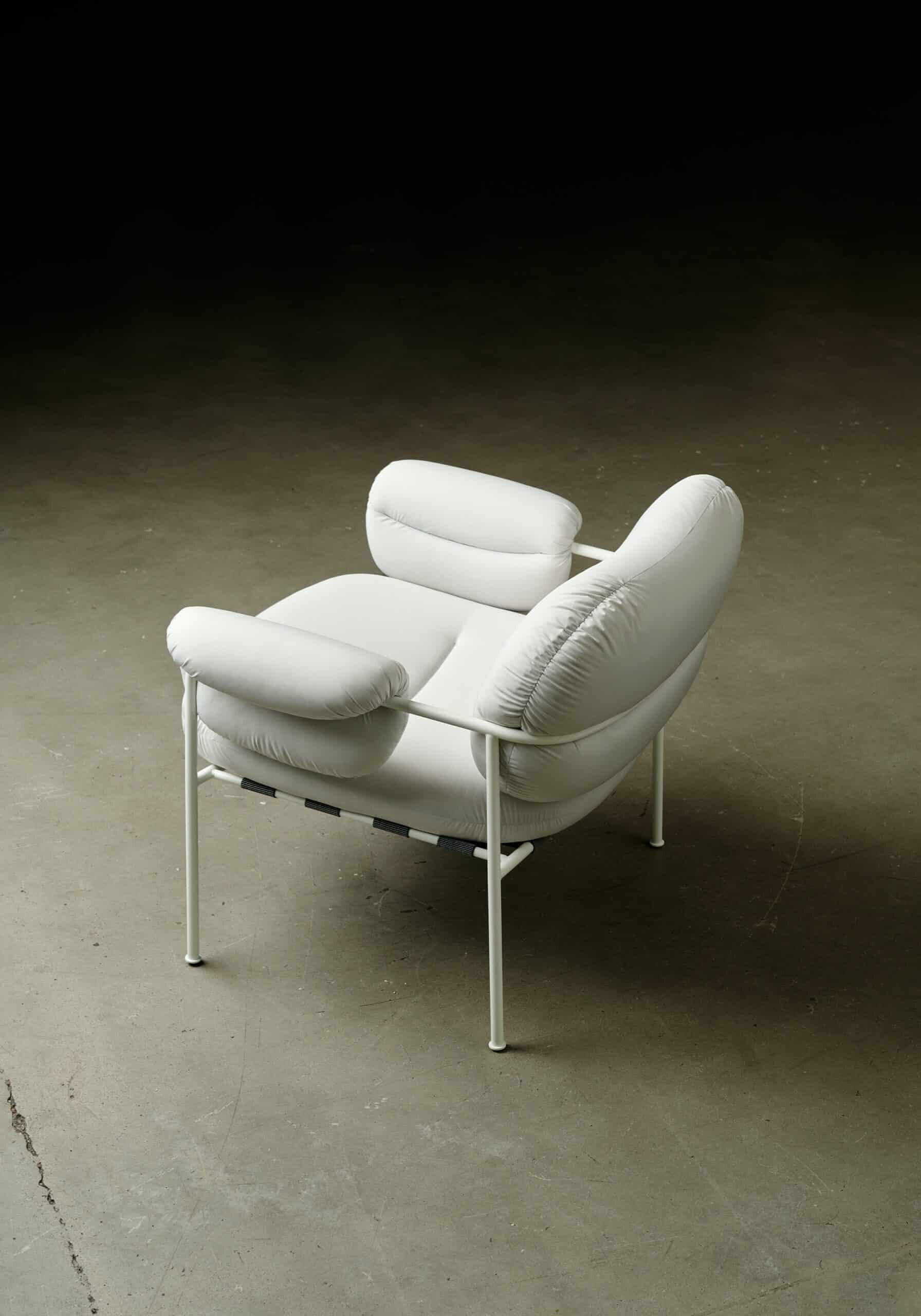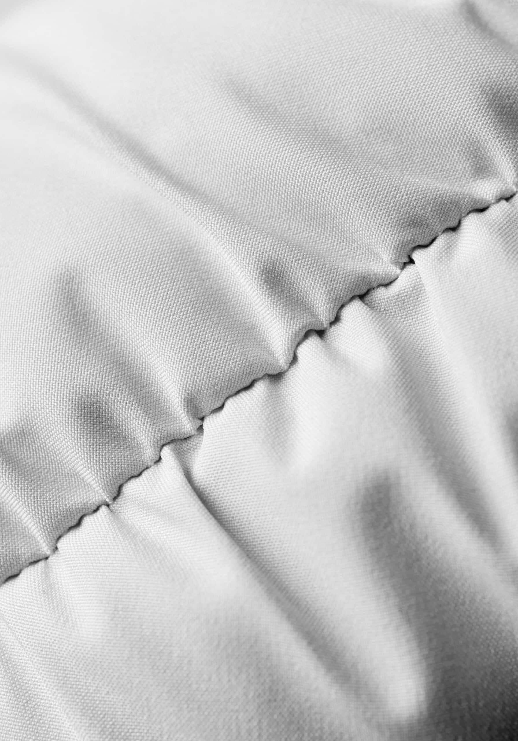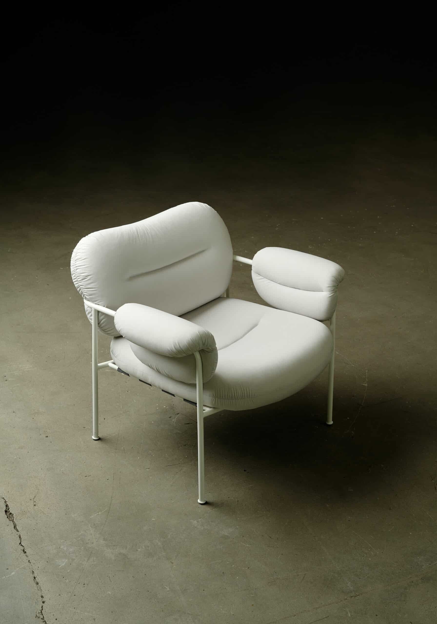 In order to minimize waste, we are testing out various projects. One of the projects we have done in collaboration with our friends from Fogia. Fogia is an award-winning Swedish design company and furniture producer with handmade products that we admire. Together with them, we have taken leftover fabric from the production of our recycled polyester, that we normally use for our down jackets, and made a new and upcycled version of their iconic chair, Bollo.